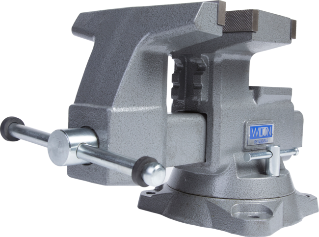 The Wilton Reversible Bench Vise is all about versatility. This vise features jaws that open an incredible distance, ranging from 10-3/4 to 14-1/2 depending on model. It also includes two anvils, a 360 swivel base and dual lock-downs to ensure maximum stability. The body and movable jaw are 30,000 PSI gray cast iron and the base is 60,000 PSI ductile iron, so this is a vise thats built to last.