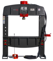 Our most powerful Shop Press, the 110 Ton offers the greatest capacity for the widest variety of projects. Able to accept all of our standard tooling along with custom tooling in its large work table area, the 110 Ton can press bearings, bend metal or straighten your parts. The rolling cylinder, open-sided design, pressure gauge, and electric foot pedal make this machine simple to use. This Shop Press package includes a Portable Power Unit and is ready to PLUG IN & POWER UP. Also available with Programmable Logic Control (PLC).