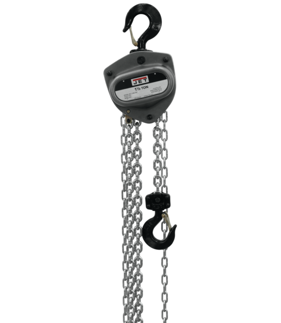 JET L-100 Series Hand Chain Hoist is designed with all steel construction and integrates safety, durability and innovation enabling it to operate in the most demanding industrial environments. Safety features such as the slip clutch style overload protection that prevents the hoist from lifting damaging loads beyond its rated capacity. The JET exclusive innovation showcased in the patented fused brake system reduces maintenance costs and limits downtime. JET is so confident in the durability of the fused brake design we back it with an industry leading lifetime replacement warranty. The JET L-100 is available in ton to 20 ton capacities and standard lifts of 10, 15, 20, and 30 feet (custom lifts available). Regardless of how harsh the environment, the JET L-100 Series Hand Chain Hoist is engineered to perform.