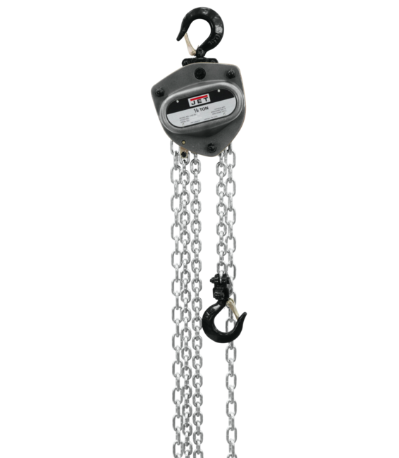 JET L-100 Series Hand Chain Hoist is designed with all steel construction and integrates safety, durability and innovation enabling it to operate in the most demanding industrial environments. Safety features such as the slip clutch style overload protection that prevents the hoist from lifting damaging loads beyond its rated capacity. The JET exclusive innovation showcased in the patented fused brake system reduces maintenance costs and limits downtime. JET is so confident in the durability of the fused brake design we back it with an industry leading lifetime replacement warranty. The JET L-100 is available in ton to 20 ton capacities and standard lifts of 10, 15, 20, and 30 feet (custom lifts available). Regardless of how harsh the environment, the JET L-100 Series Hand Chain Hoist is engineered to perform.