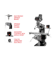 Elite offers world class mills fully loaded with features. With Certified Meehanite castings, an electronic spindle brake that prevents accidental startups, and a hardened and ground table, this mill provides reliability and durability for milling a diverse variety of materials. Our patented vari-disc key provides up to 10 times the wear resistance than aluminum or brass keys. The fully hardened Chromium Molybdenum spindle meets strict tolerance requirements and utilizes class 7210 (P4, ABEC-7) precision angular bearings for the industry-leading spindle taper runout of 0.00012". The Y- and Z-axis ways are hand scraped to a minimum of 16 points per square inch for greater oil retention and smooth movements. Additionally, every 30 minutes, your Elite mill is automatically lubricated with a flow of 3 to 6 cc/cy. For operator safety, all Elite Mills are CSA/CUS Certified and come with a spindle safety guard.